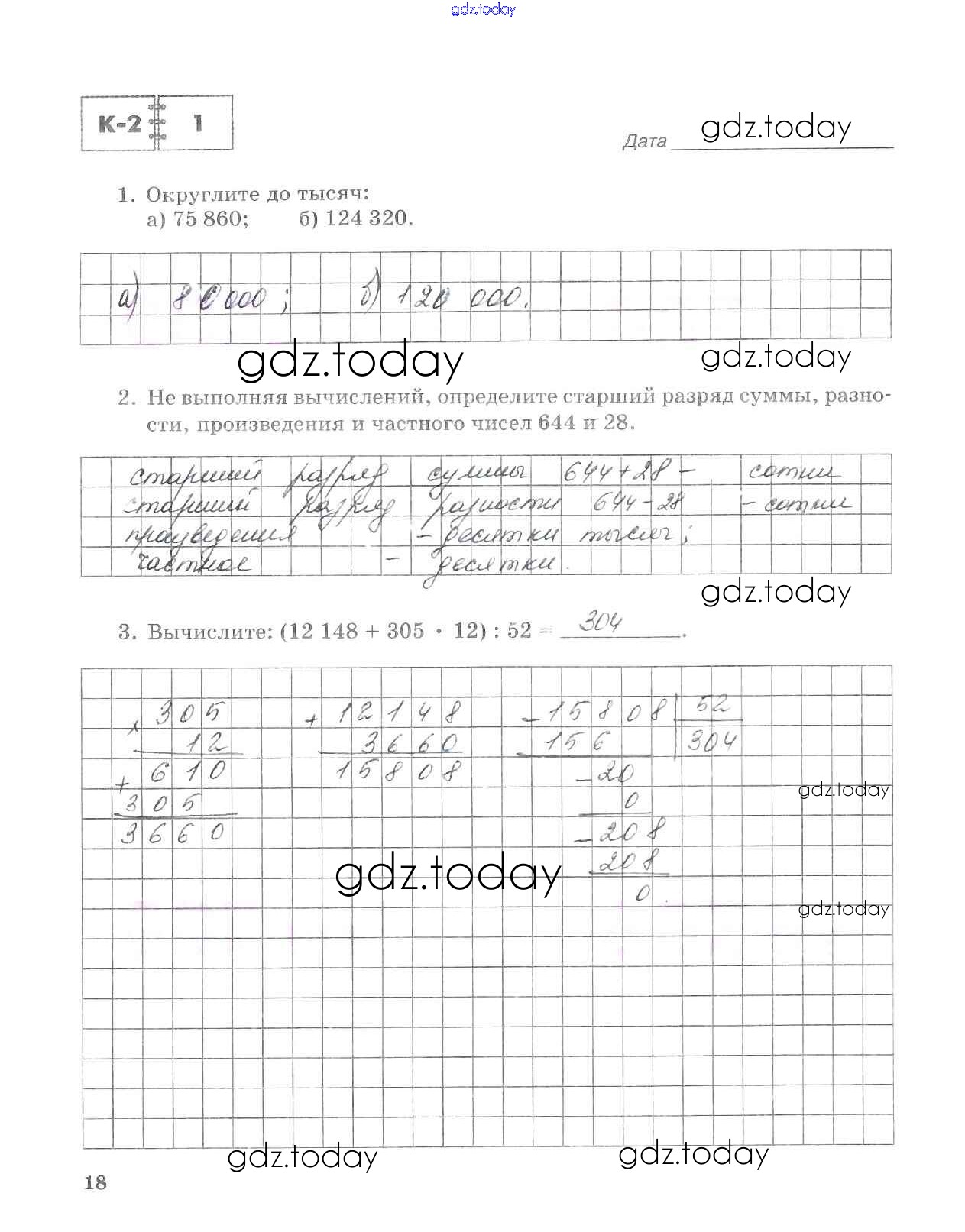 На страницах сайта gdz.today вы найдете учебный и вспомогательный материал, направленный на улучшения знаний школьной программы. ГДЗ - онлайн мир знаний Решение к части 1. Страницы 18 Тетради для контрольных работ по Математике для 5 класса Зубарева, Лепешонкова Мнемозина 2018