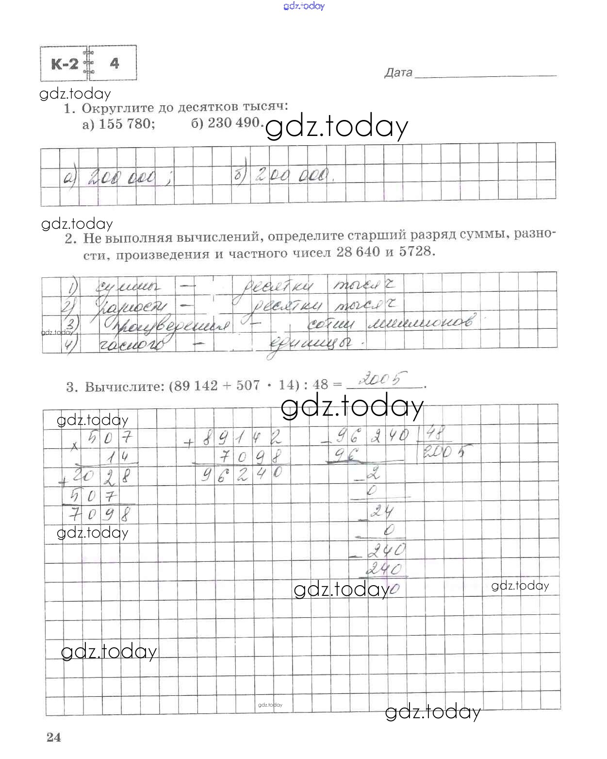 На страницах сайта gdz.today вы найдете учебный и вспомогательный материал, направленный на улучшения знаний школьной программы. ГДЗ - онлайн мир знаний Решение к части 1. Страницы 24 Тетради для контрольных работ по Математике для 5 класса Зубарева, Лепешонкова Мнемозина 2018