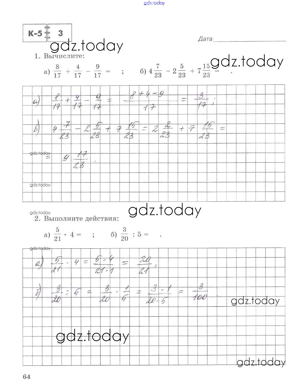 На страницах сайта gdz.today вы найдете учебный и вспомогательный материал, направленный на улучшения знаний школьной программы. ГДЗ - онлайн мир знаний Решение к части 1. Страницы 64 Тетради для контрольных работ по Математике для 5 класса Зубарева, Лепешонкова Мнемозина 2018