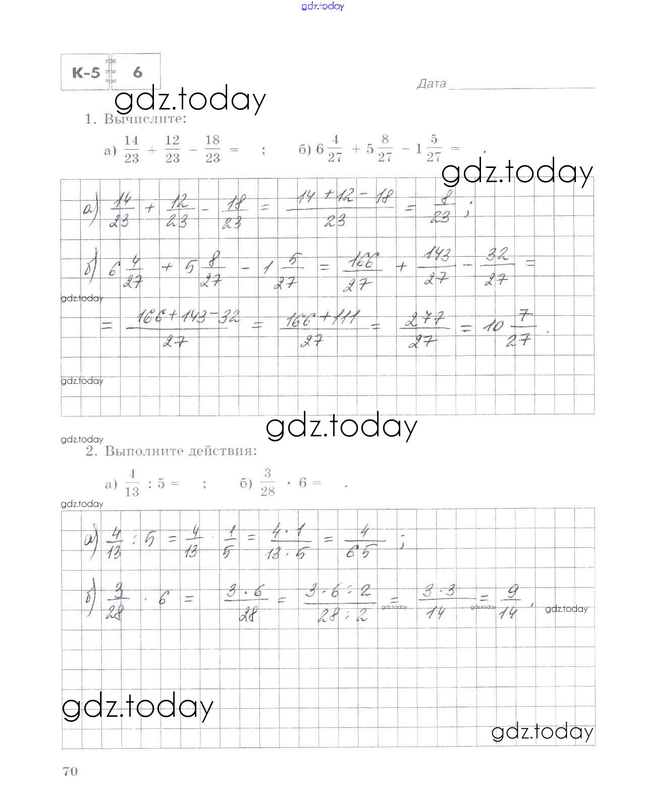 На страницах сайта gdz.today вы найдете учебный и вспомогательный материал, направленный на улучшения знаний школьной программы. ГДЗ - онлайн мир знаний Решение к части 1. Страницы 70 Тетради для контрольных работ по Математике для 5 класса Зубарева, Лепешонкова Мнемозина 2018