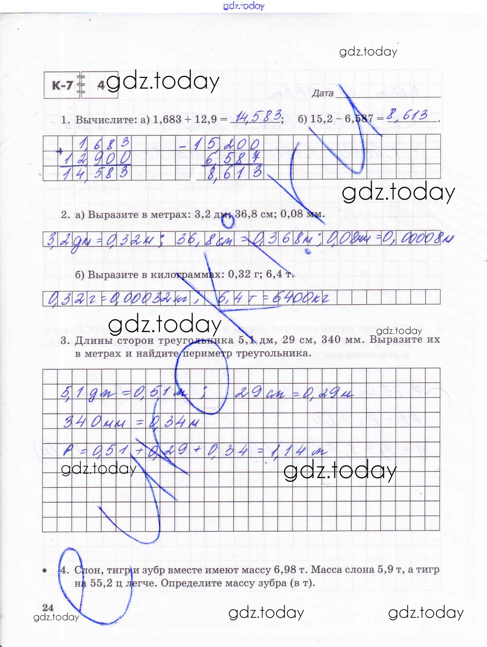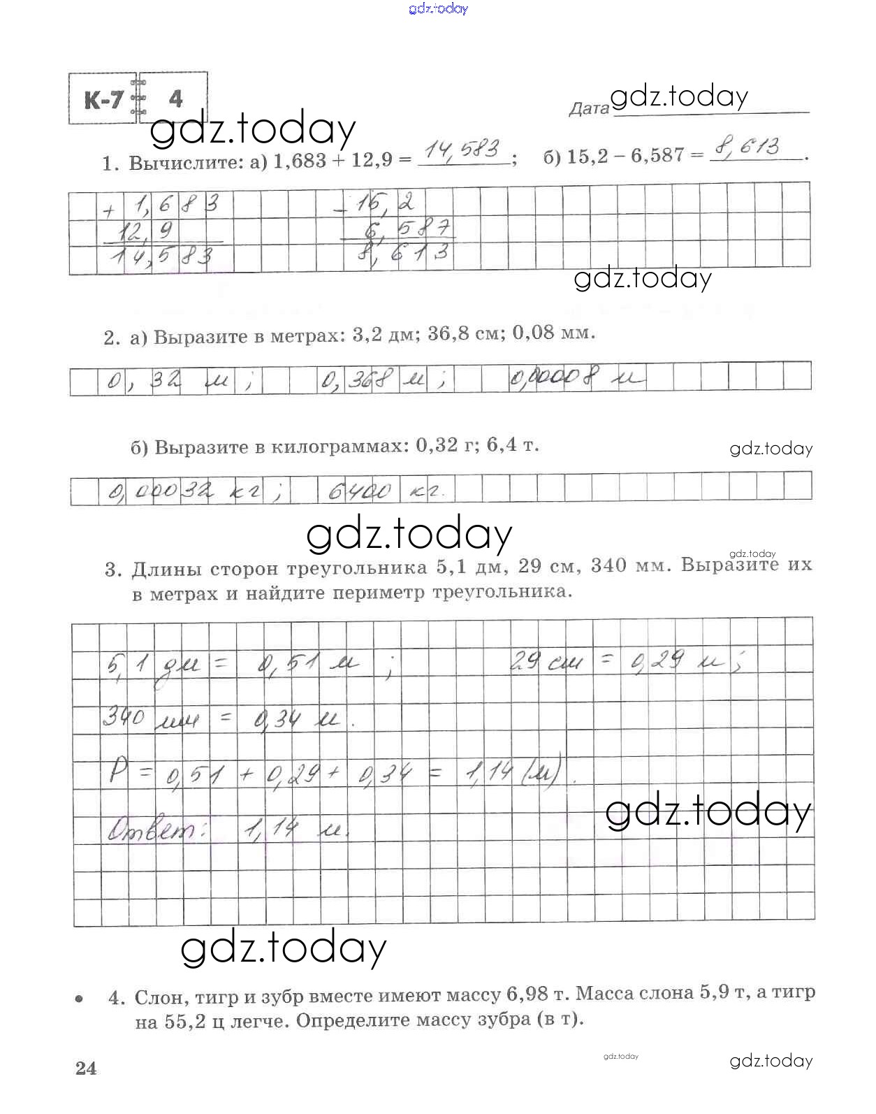 На страницах сайта gdz.today вы найдете учебный и вспомогательный материал, направленный на улучшения знаний школьной программы. ГДЗ - онлайн мир знаний Решение к части 2. Страницы 24 Тетради для контрольных работ по Математике для 5 класса Зубарева, Лепешонкова Мнемозина 2018