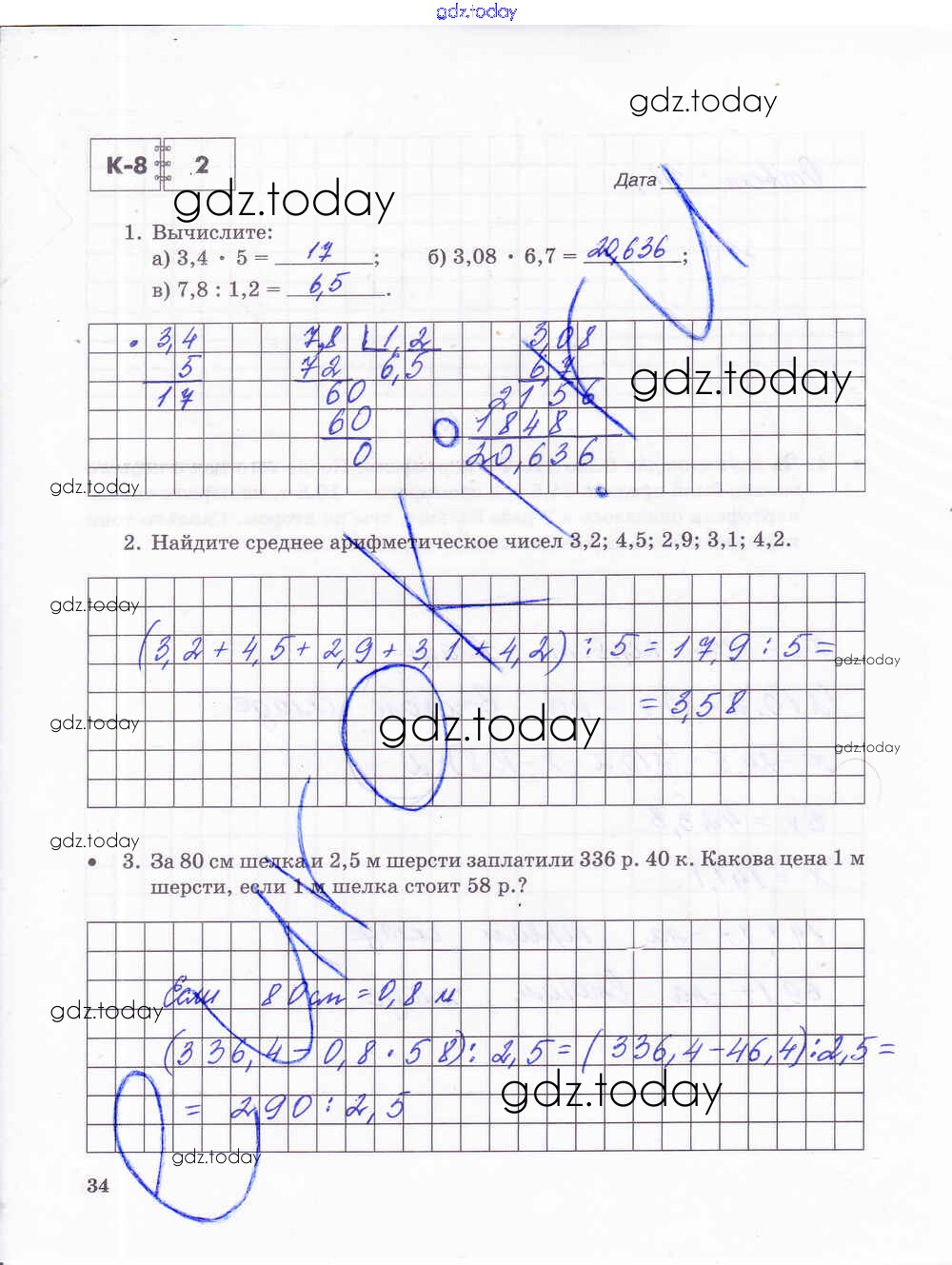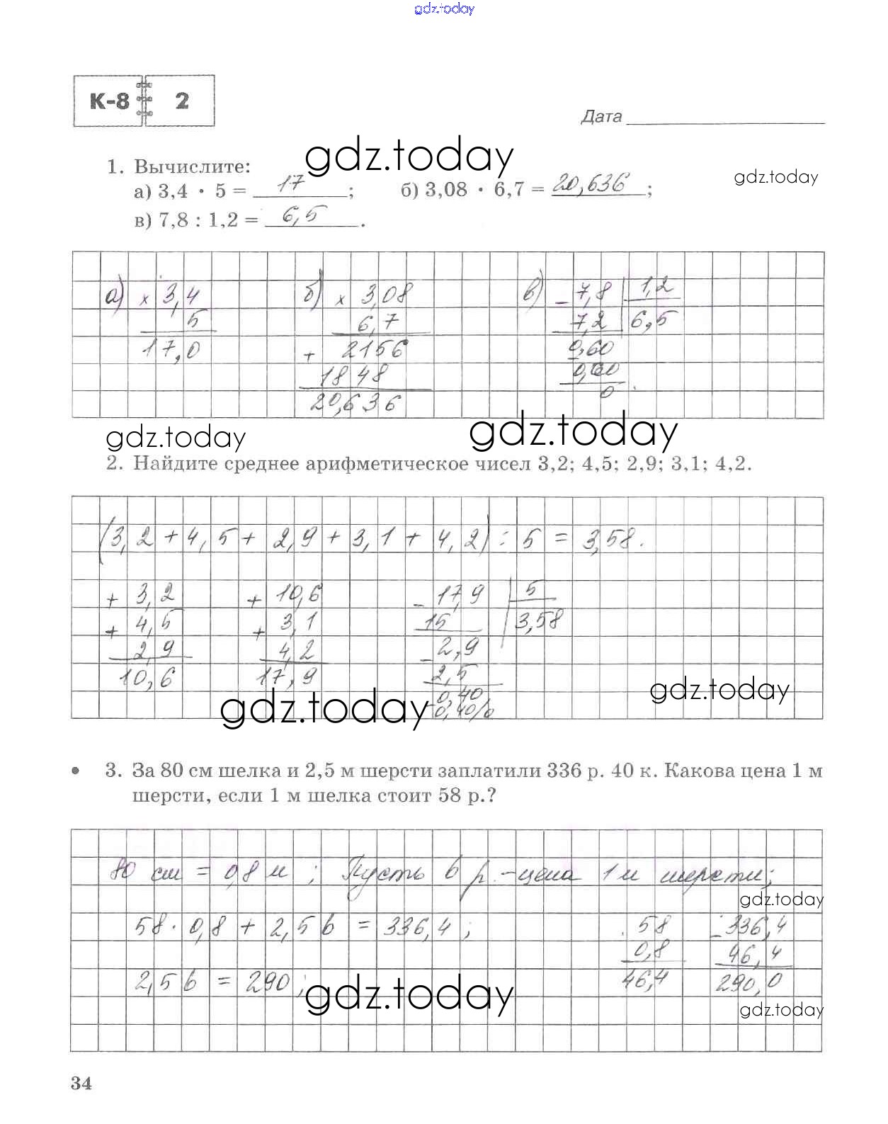 На страницах сайта gdz.today вы найдете учебный и вспомогательный материал, направленный на улучшения знаний школьной программы. ГДЗ - онлайн мир знаний Решение к части 2. Страницы 34 Тетради для контрольных работ по Математике для 5 класса Зубарева, Лепешонкова Мнемозина 2018