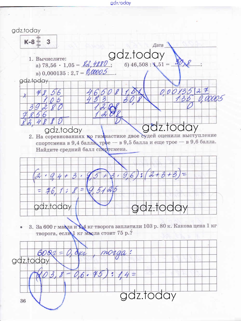 На страницах сайта gdz.today вы найдете учебный и вспомогательный материал, направленный на улучшения знаний школьной программы. ГДЗ - онлайн мир знаний Решение к части 2. Страницы 36 Тетради для контрольных работ по Математике для 5 класса Зубарева, Лепешонкова Мнемозина 2018