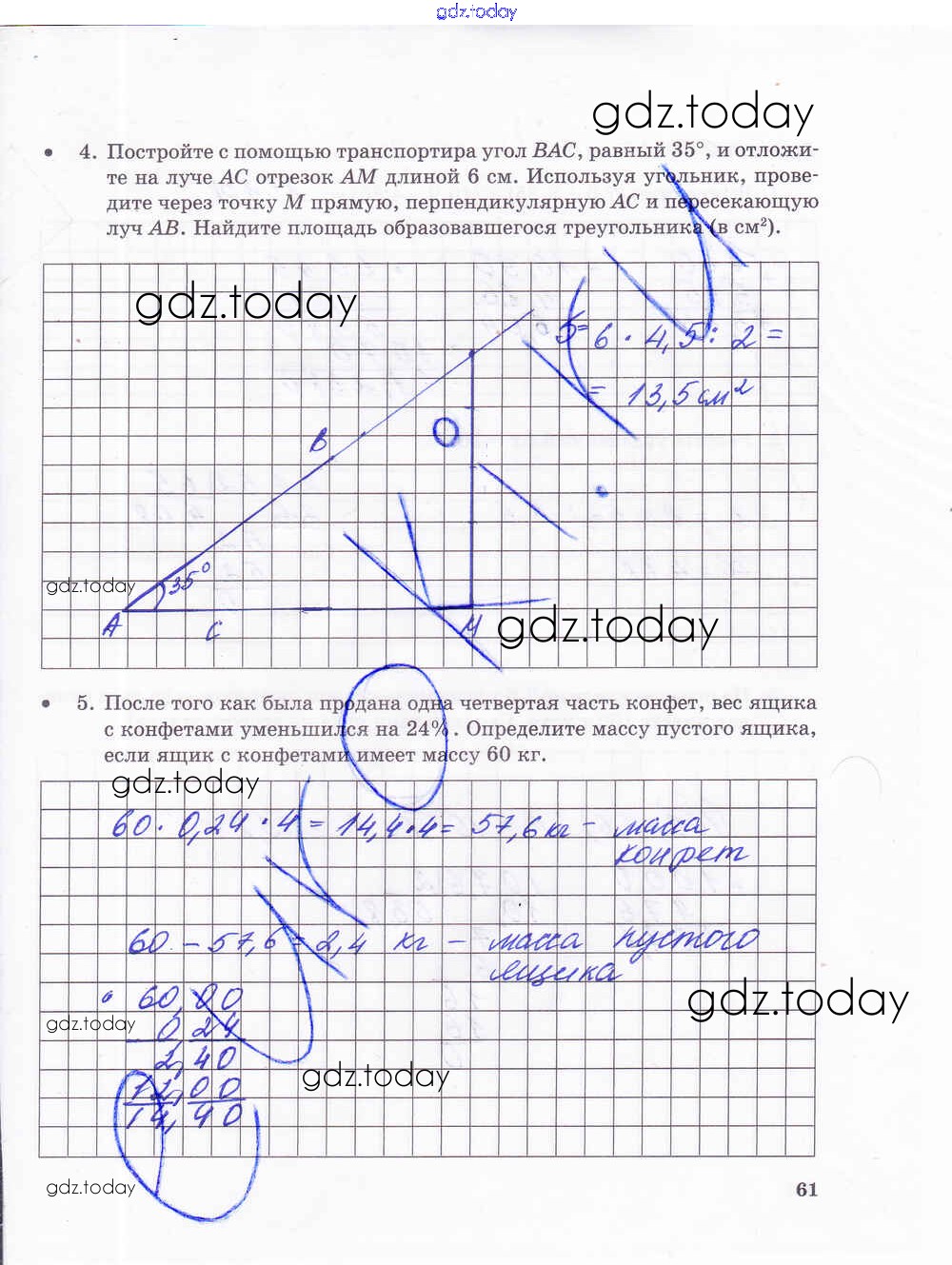 На страницах сайта gdz.today вы найдете учебный и вспомогательный материал, направленный на улучшения знаний школьной программы. ГДЗ - онлайн мир знаний Решение к части 2. Страницы 61 Тетради для контрольных работ по Математике для 5 класса Зубарева, Лепешонкова Мнемозина 2018
