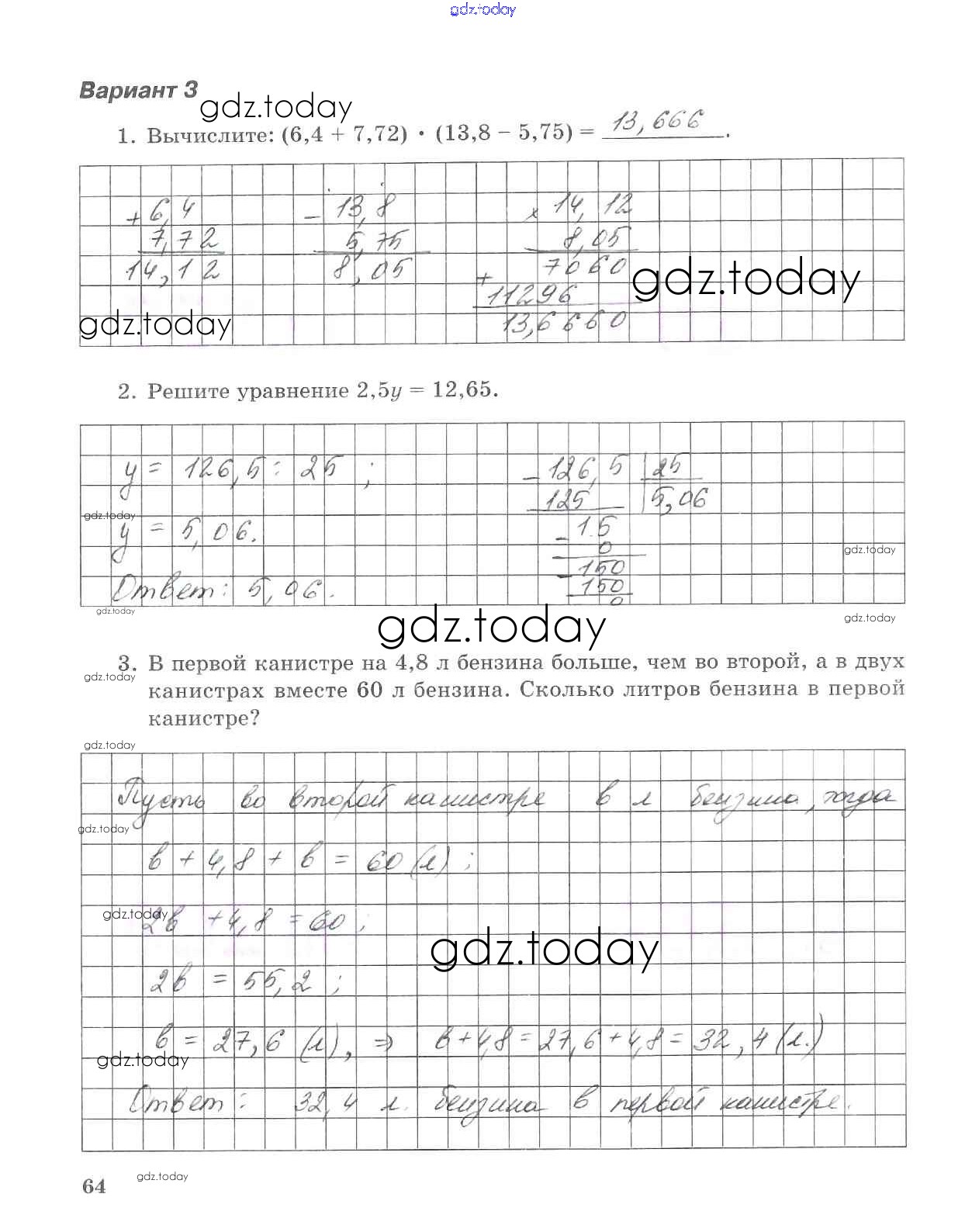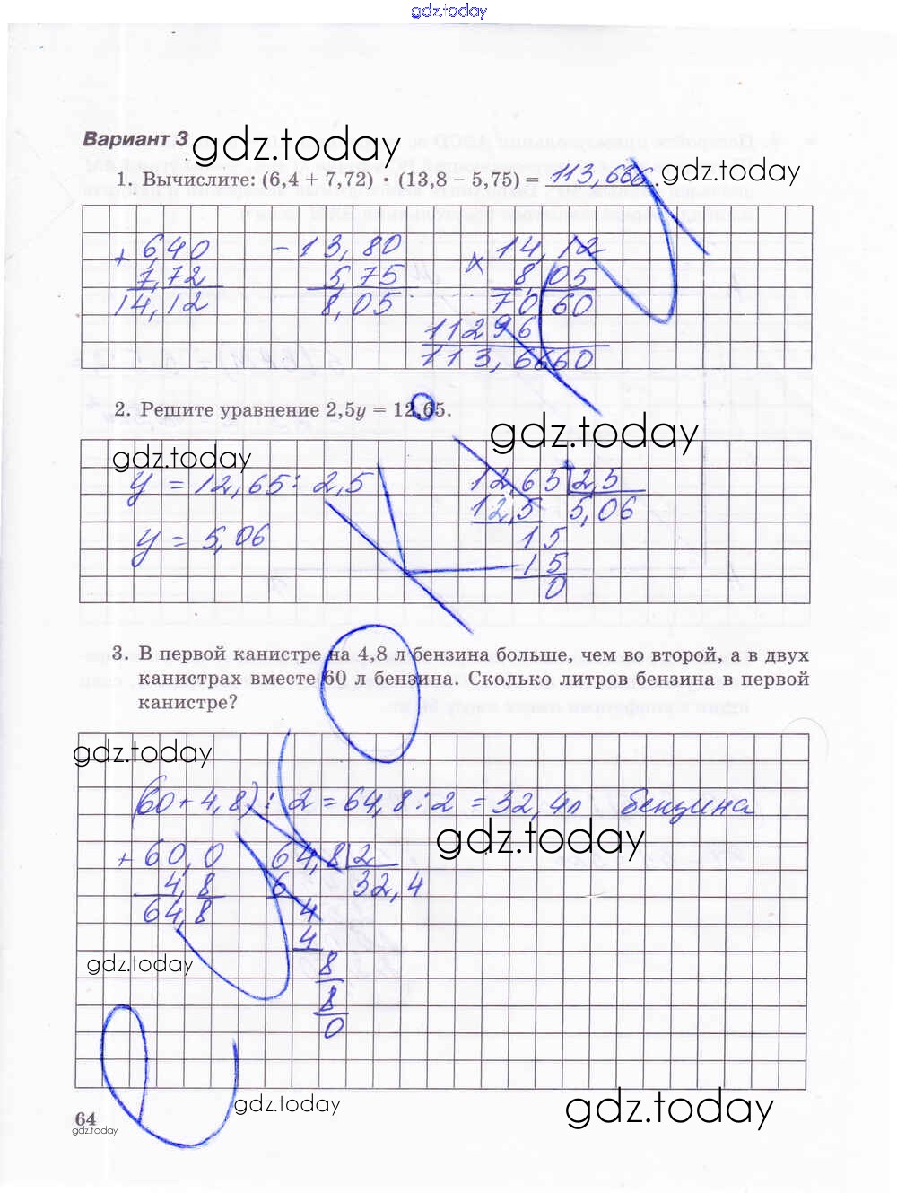 На страницах сайта gdz.today вы найдете учебный и вспомогательный материал, направленный на улучшения знаний школьной программы. ГДЗ - онлайн мир знаний Решение к части 2. Страницы 64 Тетради для контрольных работ по Математике для 5 класса Зубарева, Лепешонкова Мнемозина 2018