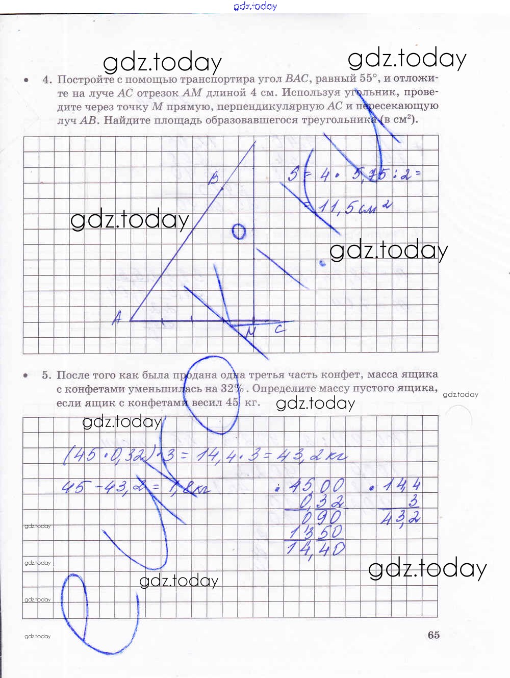 На страницах сайта gdz.today вы найдете учебный и вспомогательный материал, направленный на улучшения знаний школьной программы. ГДЗ - онлайн мир знаний Решение к части 2. Страницы 65 Тетради для контрольных работ по Математике для 5 класса Зубарева, Лепешонкова Мнемозина 2018