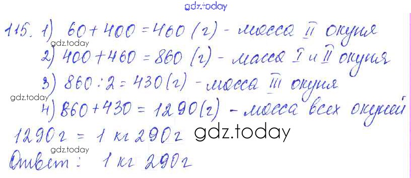 Ответы к Решение к упражнениям 115 Учебнику по Математике для 5 класса Зубарева, Мордкович Мнемозина 2015