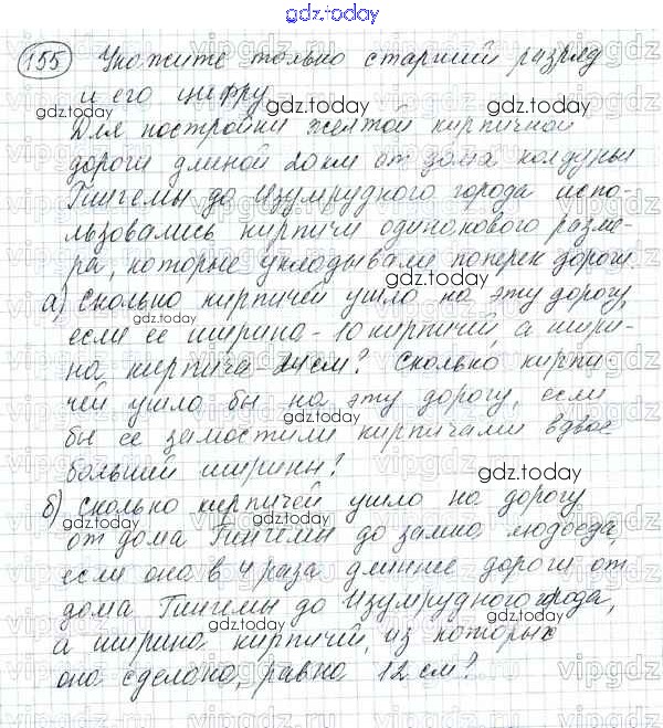На страницах сайта gdz.today вы найдете учебный и вспомогательный материал, направленный на улучшения знаний школьной программы. ГДЗ - онлайн мир знаний Решение к упражнениям 155 Учебнику по Математике для 5 класса Зубарева, Мордкович Мнемозина 2015
