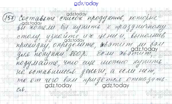 На страницах сайта gdz.today вы найдете учебный и вспомогательный материал, направленный на улучшения знаний школьной программы. ГДЗ - онлайн мир знаний Решение к упражнениям 157 Учебнику по Математике для 5 класса Зубарева, Мордкович Мнемозина 2015