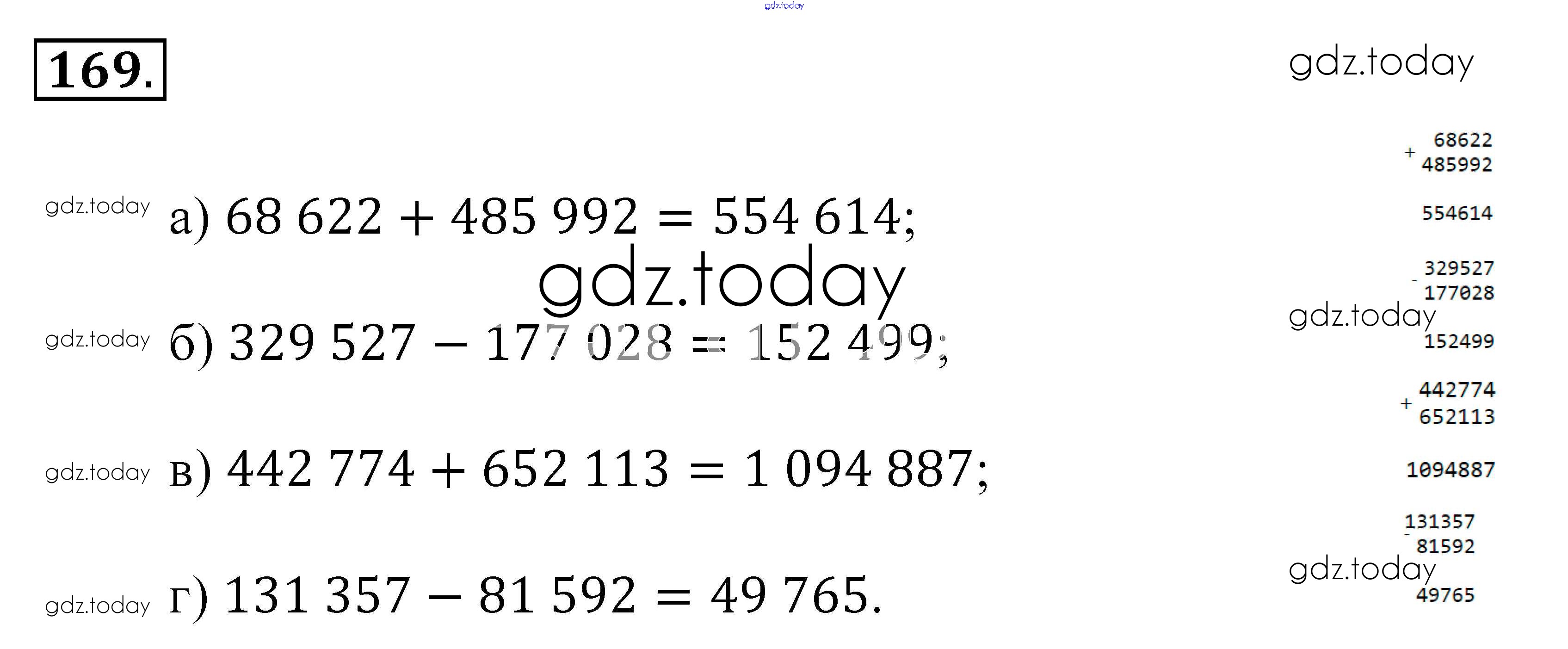 Ответы к Решение к упражнениям 169 Учебнику по Математике для 5 класса Зубарева, Мордкович Мнемозина 2015