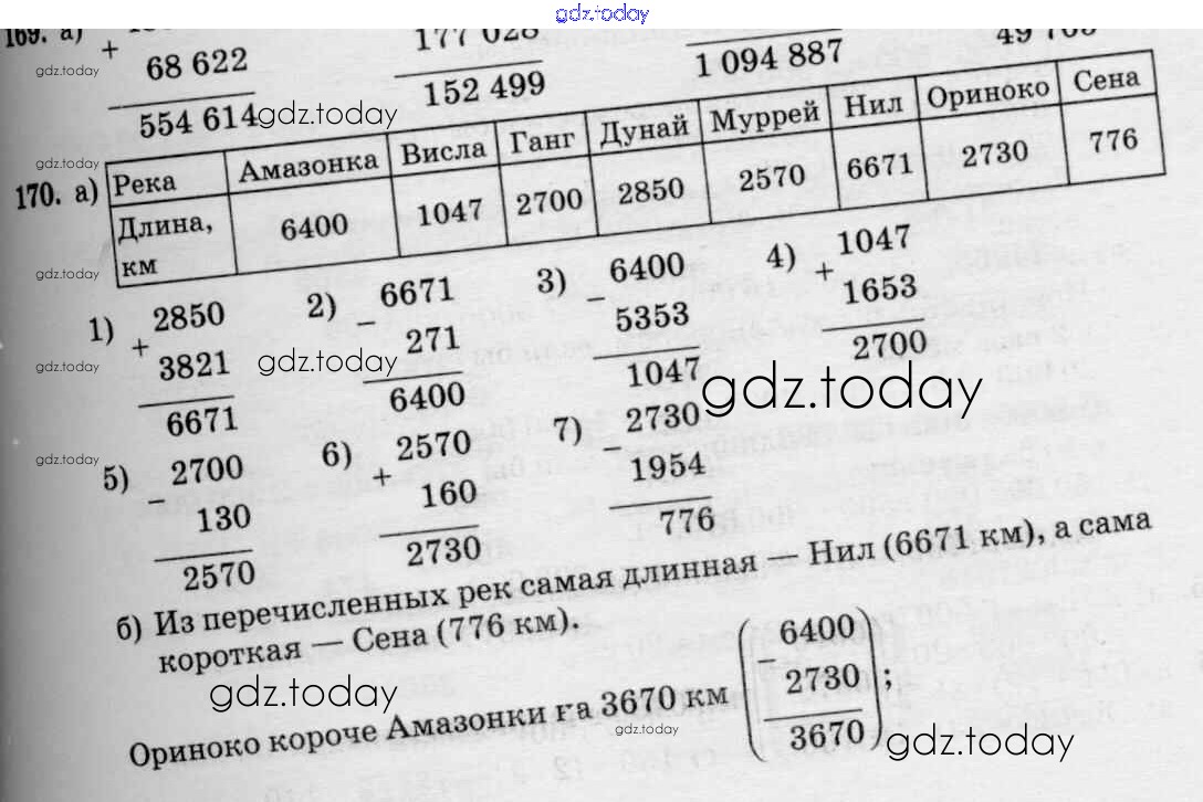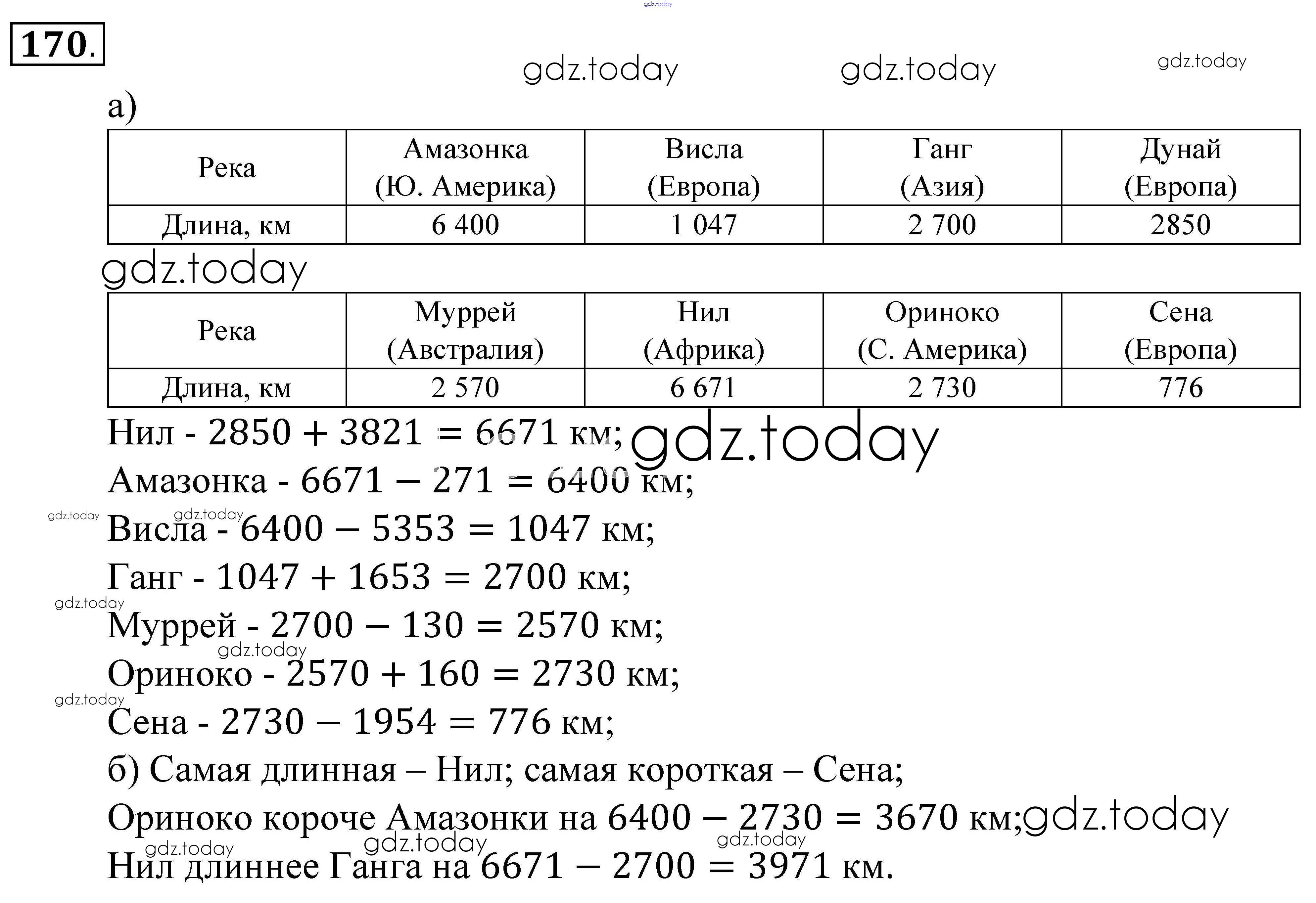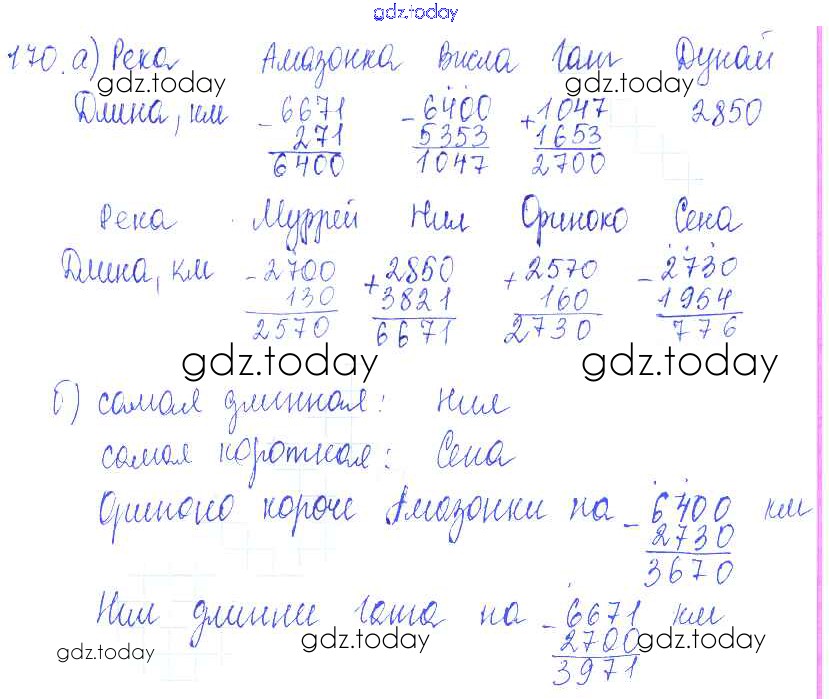 Ответы к Решение к упражнениям 170 Учебнику по Математике для 5 класса Зубарева, Мордкович Мнемозина 2015
