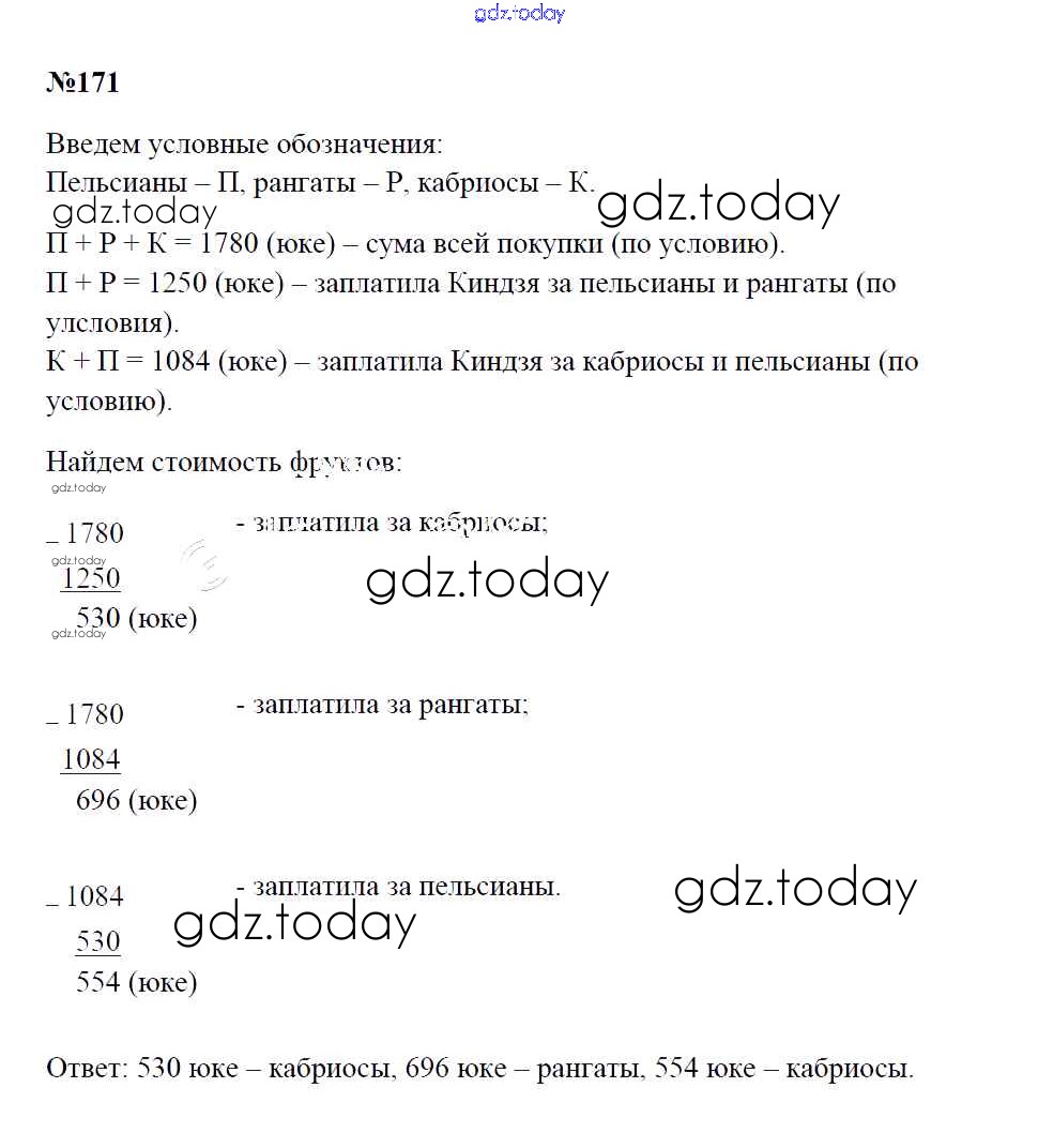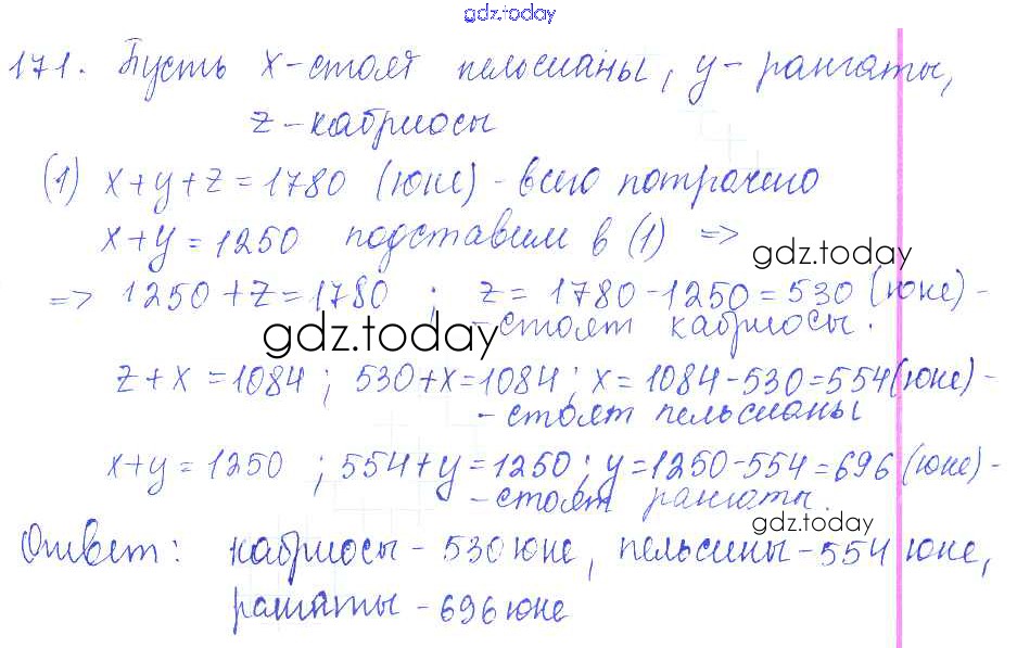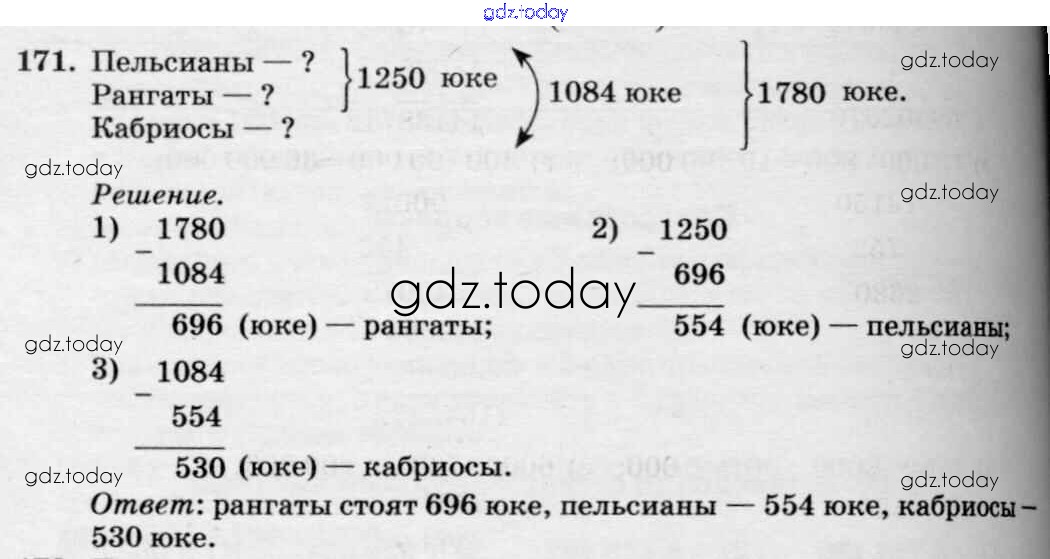 Ответы к Решение к упражнениям 171 Учебнику по Математике для 5 класса Зубарева, Мордкович Мнемозина 2015