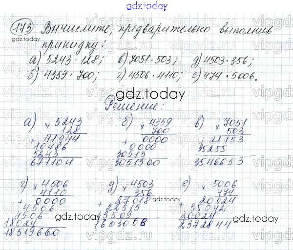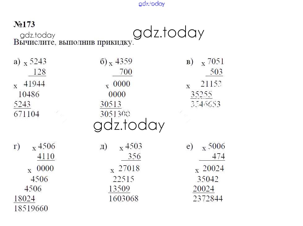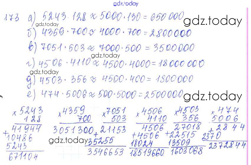 Ответы к Решение к упражнениям 173 Учебнику по Математике для 5 класса Зубарева, Мордкович Мнемозина 2015
