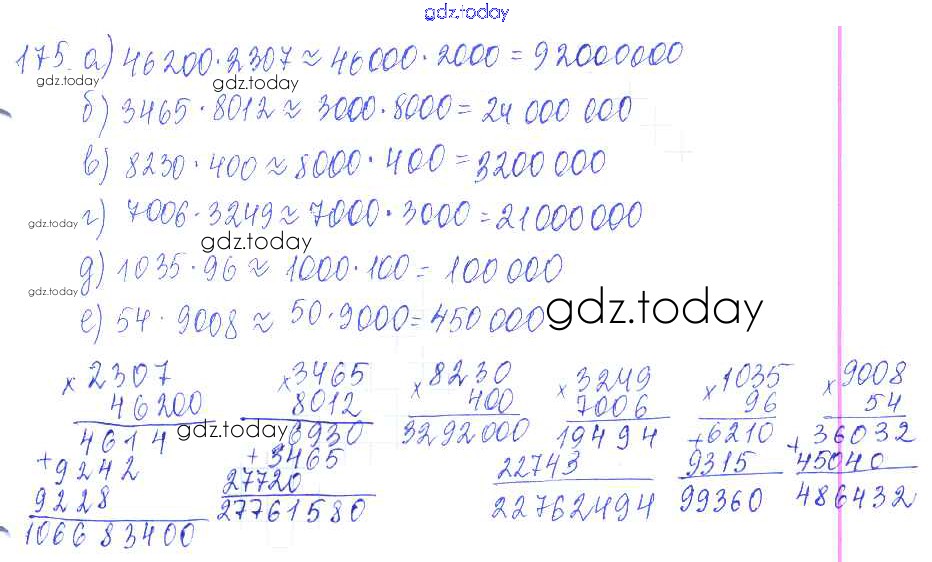 Ответы к Решение к упражнениям 175 Учебнику по Математике для 5 класса Зубарева, Мордкович Мнемозина 2015