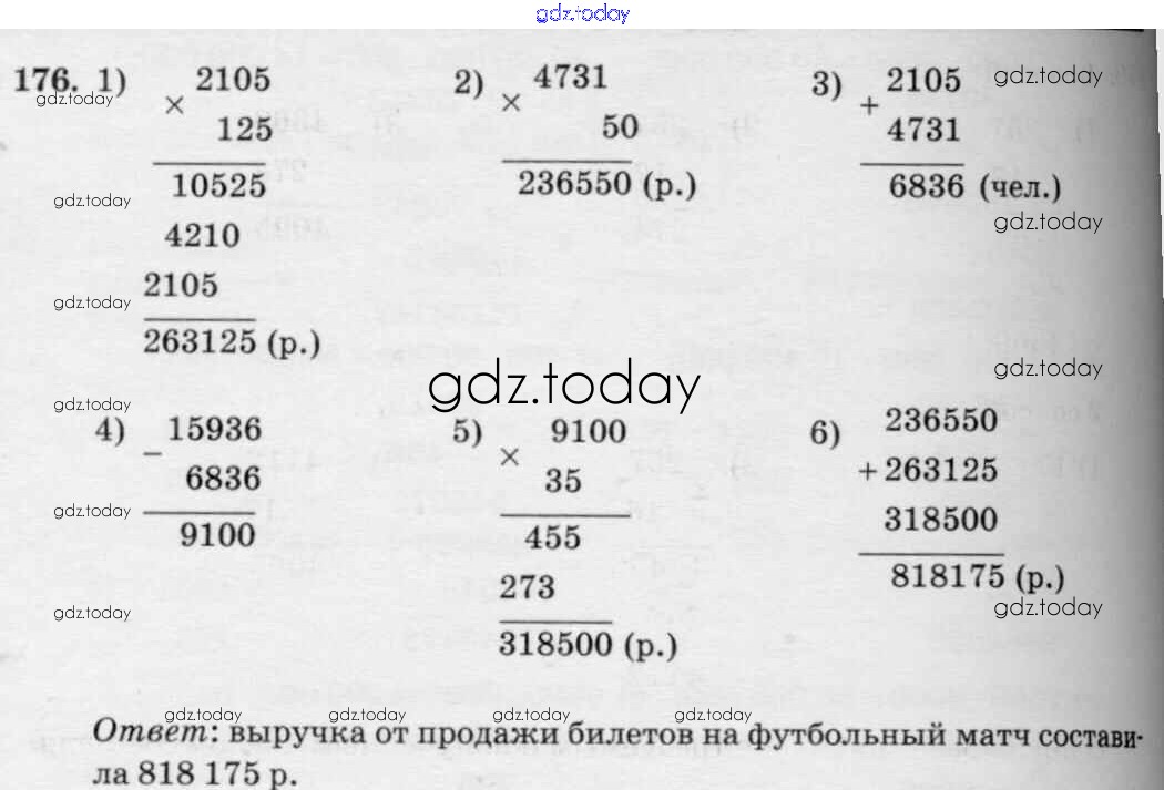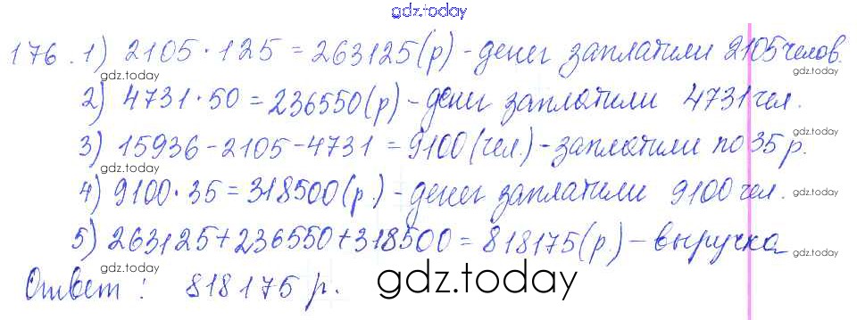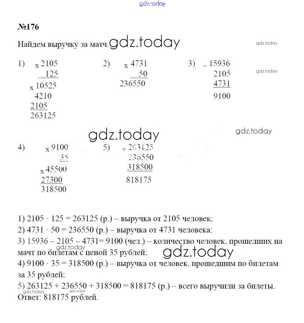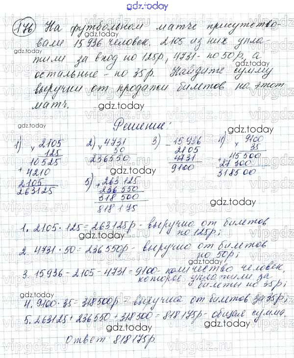 Ответы к Решение к упражнениям 176 Учебнику по Математике для 5 класса Зубарева, Мордкович Мнемозина 2015
