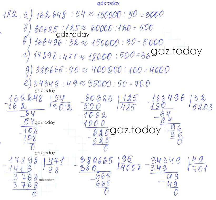 Ответы к Решение к упражнениям 182 Учебнику по Математике для 5 класса Зубарева, Мордкович Мнемозина 2015