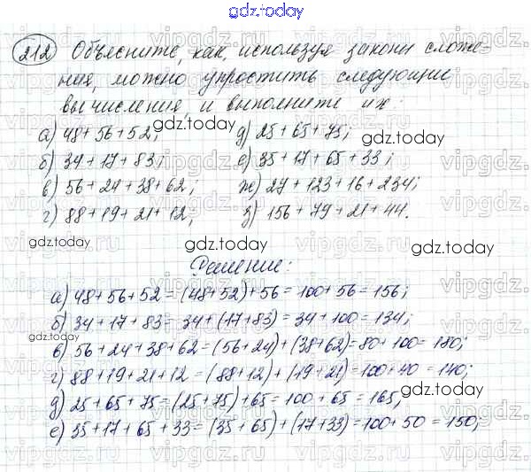Ответы к Решение к упражнениям 212 Учебнику по Математике для 5 класса Зубарева, Мордкович Мнемозина 2015