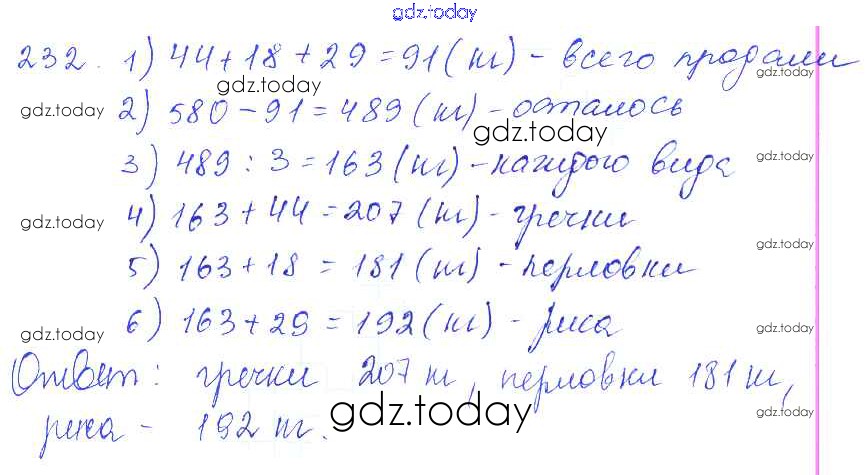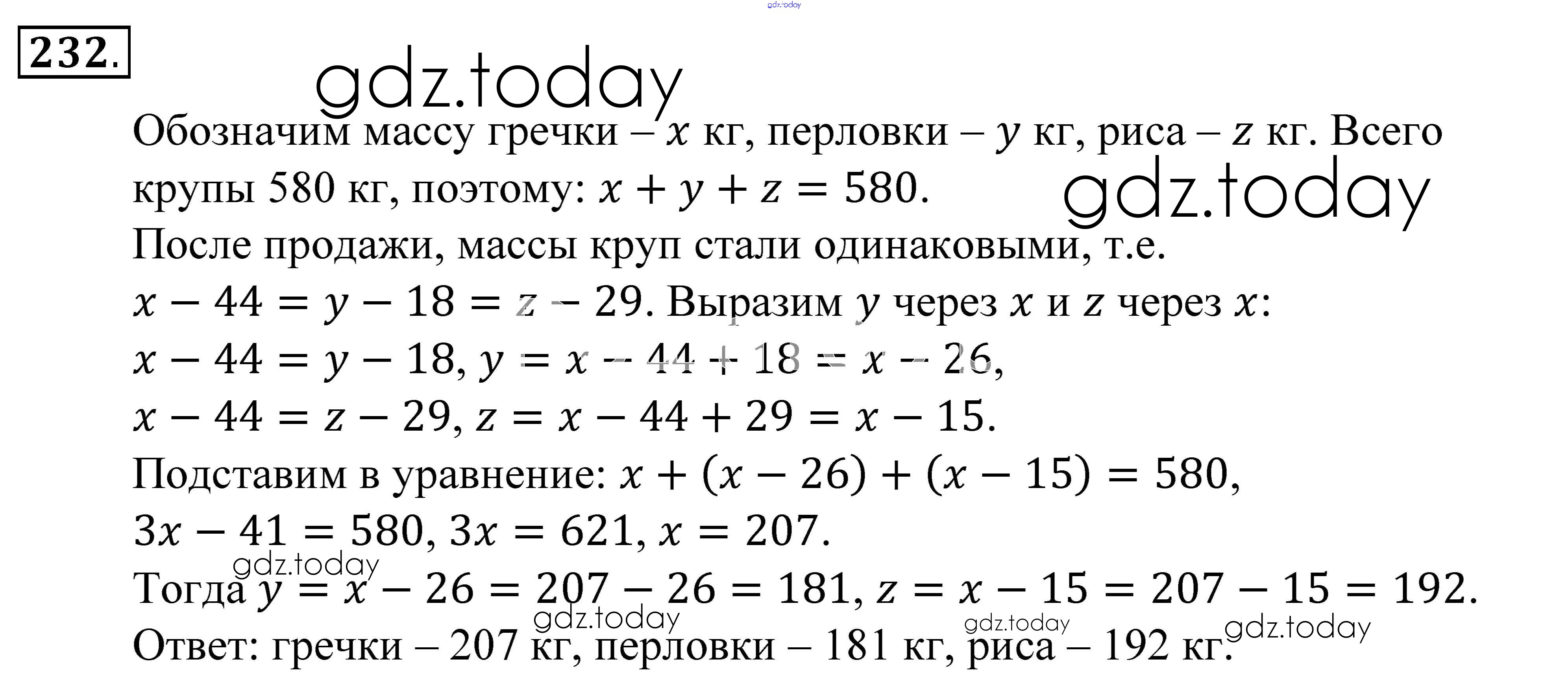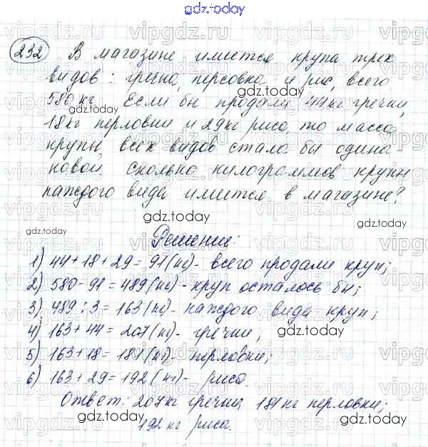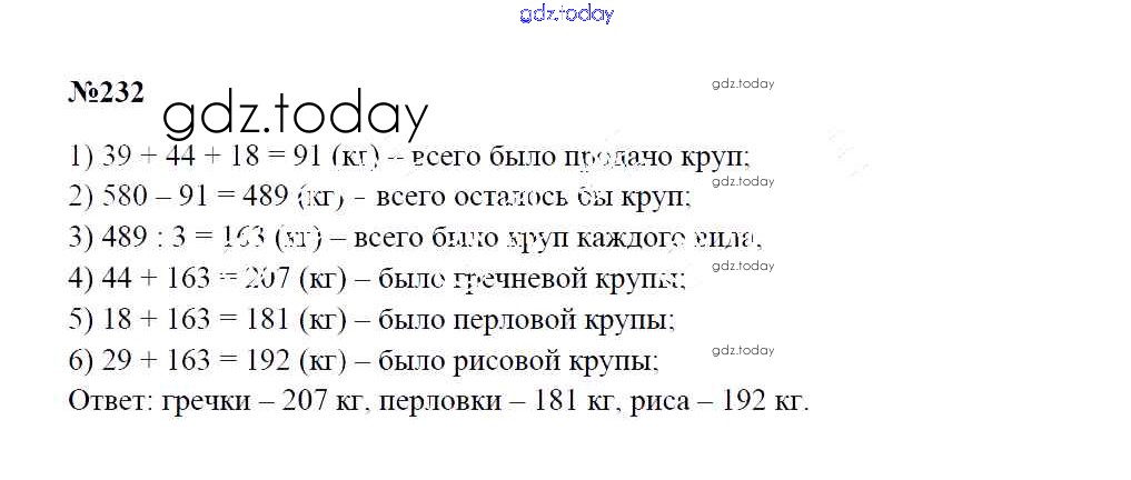 Ответы к Решение к упражнениям 232 Учебнику по Математике для 5 класса Зубарева, Мордкович Мнемозина 2015