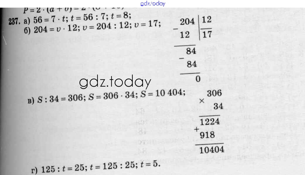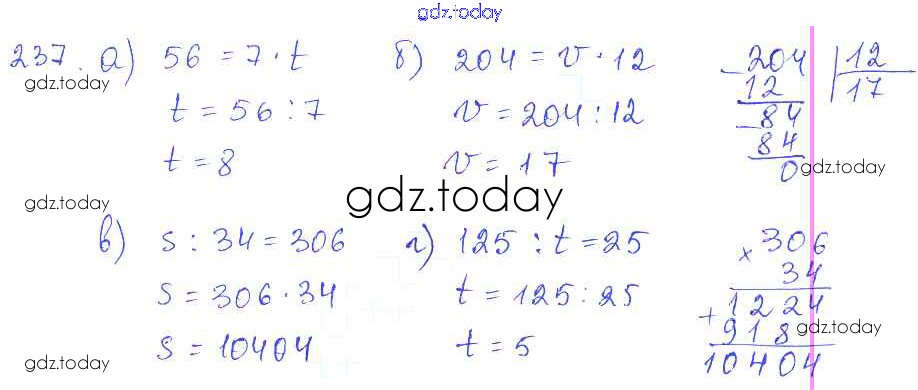 Ответы к Решение к упражнениям 237 Учебнику по Математике для 5 класса Зубарева, Мордкович Мнемозина 2015