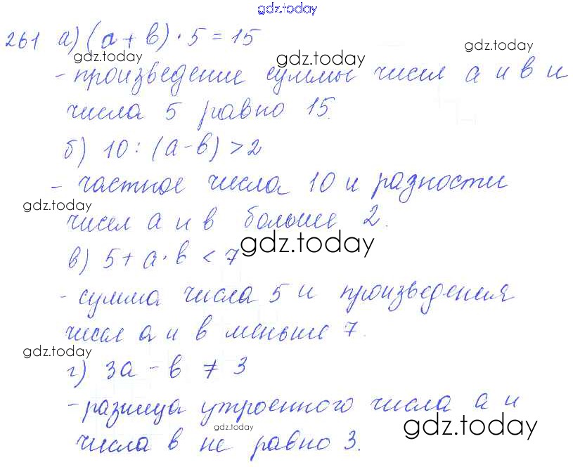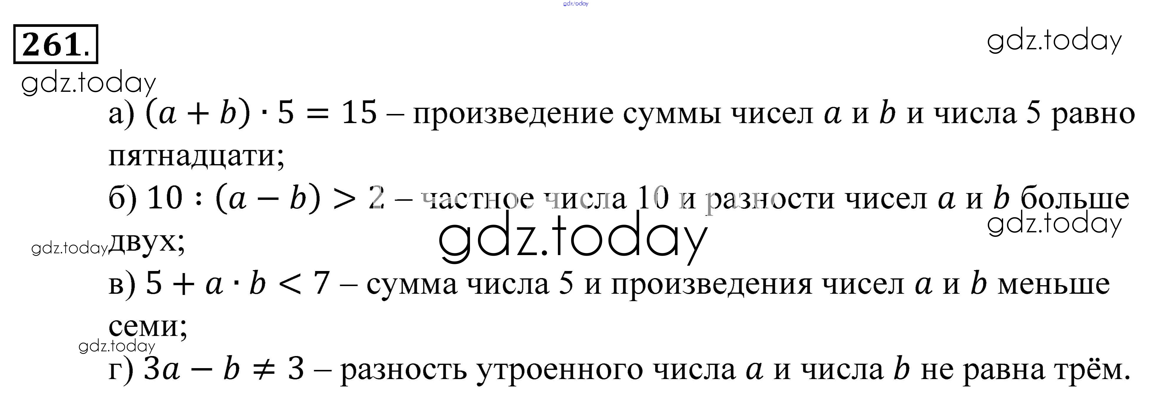 На страницах сайта gdz.today вы найдете учебный и вспомогательный материал, направленный на улучшения знаний школьной программы. ГДЗ - онлайн мир знаний Решение к упражнениям 261 Учебнику по Математике для 5 класса Зубарева, Мордкович Мнемозина 2015