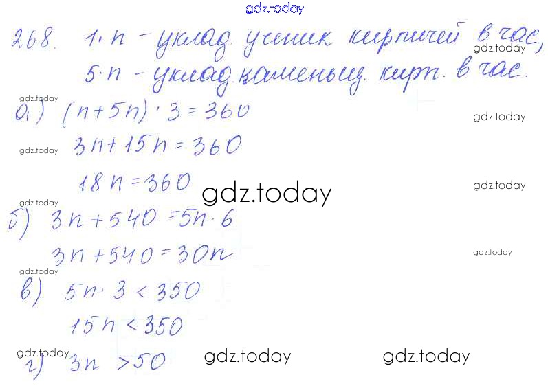 Ответы к Решение к упражнениям 268 Учебнику по Математике для 5 класса Зубарева, Мордкович Мнемозина 2015