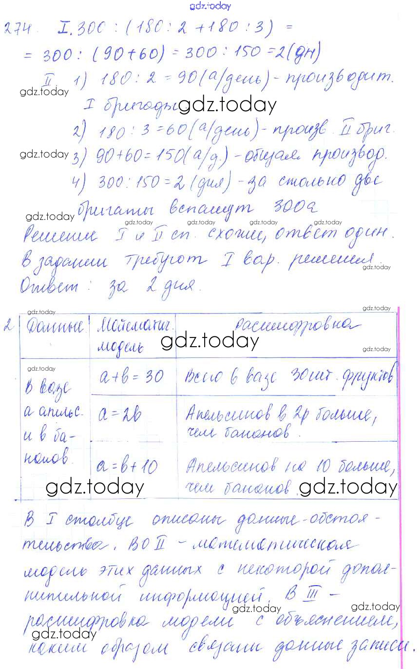 Ответы к Решение к упражнениям 274 Учебнику по Математике для 5 класса Зубарева, Мордкович Мнемозина 2015
