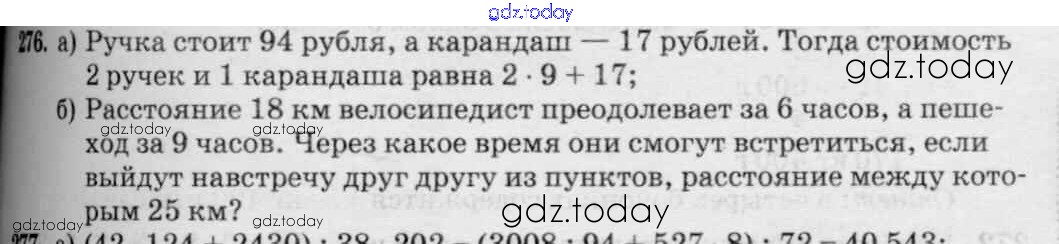 Ответы к Решение к упражнениям 276 Учебнику по Математике для 5 класса Зубарева, Мордкович Мнемозина 2015