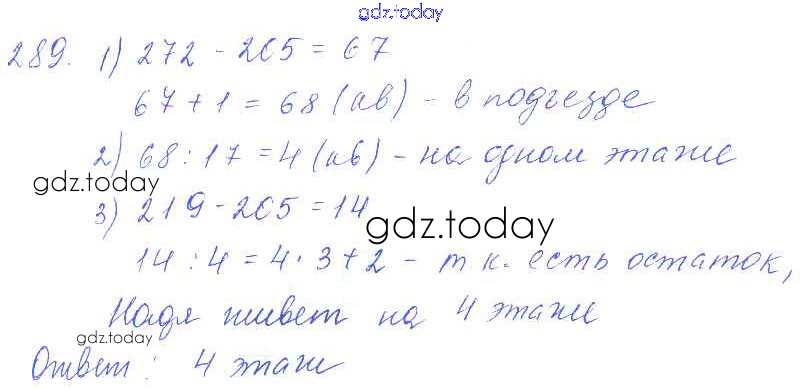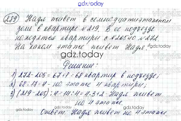 Ответы к Решение к упражнениям 289 Учебнику по Математике для 5 класса Зубарева, Мордкович Мнемозина 2015