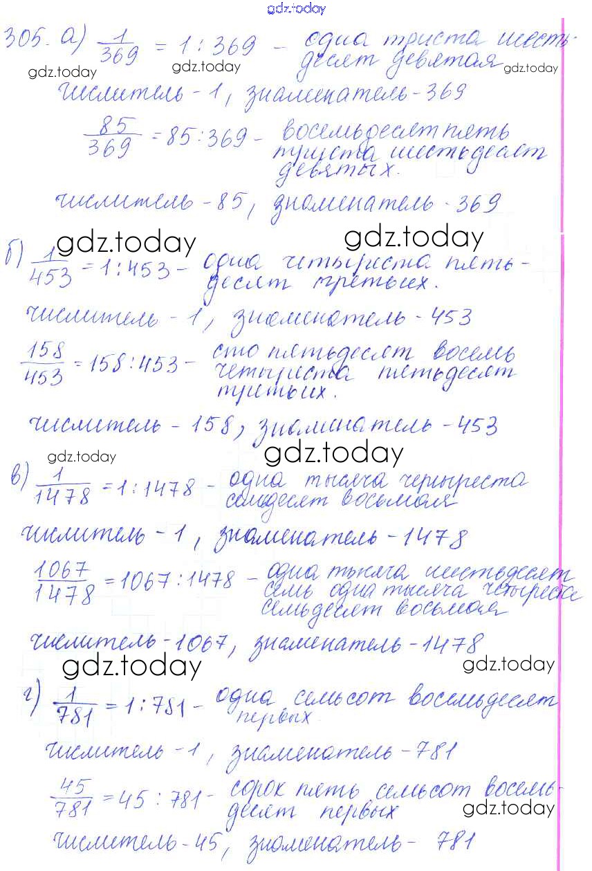 На страницах сайта gdz.today вы найдете учебный и вспомогательный материал, направленный на улучшения знаний школьной программы. ГДЗ - онлайн мир знаний Решение к упражнениям 305 Учебнику по Математике для 5 класса Зубарева, Мордкович Мнемозина 2015