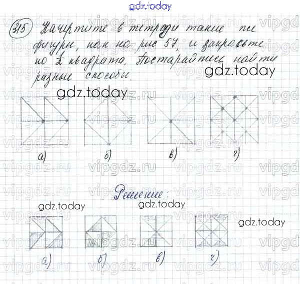 На страницах сайта gdz.today вы найдете учебный и вспомогательный материал, направленный на улучшения знаний школьной программы. ГДЗ - онлайн мир знаний Решение к упражнениям 315 Учебнику по Математике для 5 класса Зубарева, Мордкович Мнемозина 2015