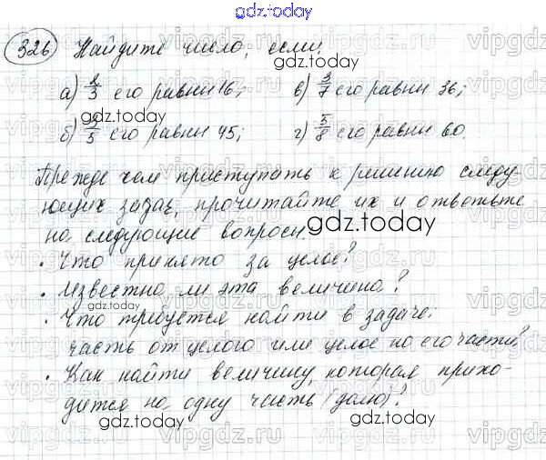 На страницах сайта gdz.today вы найдете учебный и вспомогательный материал, направленный на улучшения знаний школьной программы. ГДЗ - онлайн мир знаний Решение к упражнениям 326 Учебнику по Математике для 5 класса Зубарева, Мордкович Мнемозина 2015