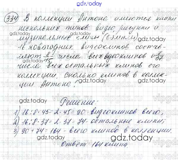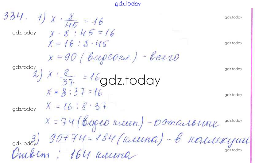 Ответы к Решение к упражнениям 334 Учебнику по Математике для 5 класса Зубарева, Мордкович Мнемозина 2015