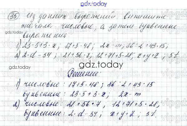 На страницах сайта gdz.today вы найдете учебный и вспомогательный материал, направленный на улучшения знаний школьной программы. ГДЗ - онлайн мир знаний Решение к упражнениям 35 Учебнику по Математике для 5 класса Зубарева, Мордкович Мнемозина 2015