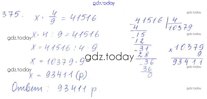 Ответы к Решение к упражнениям 375 Учебнику по Математике для 5 класса Зубарева, Мордкович Мнемозина 2015