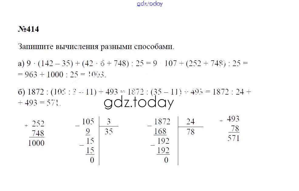 На страницах сайта gdz.today вы найдете учебный и вспомогательный материал, направленный на улучшения знаний школьной программы. ГДЗ - онлайн мир знаний Решение к упражнениям 414 Учебнику по Математике для 5 класса Зубарева, Мордкович Мнемозина 2015