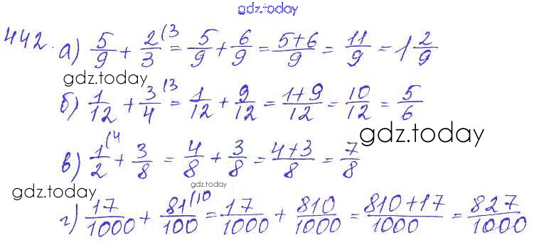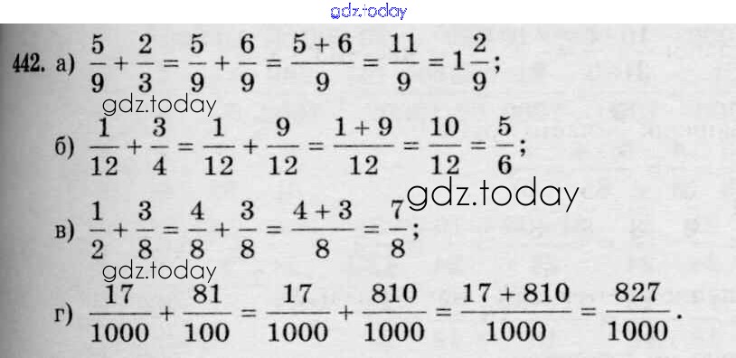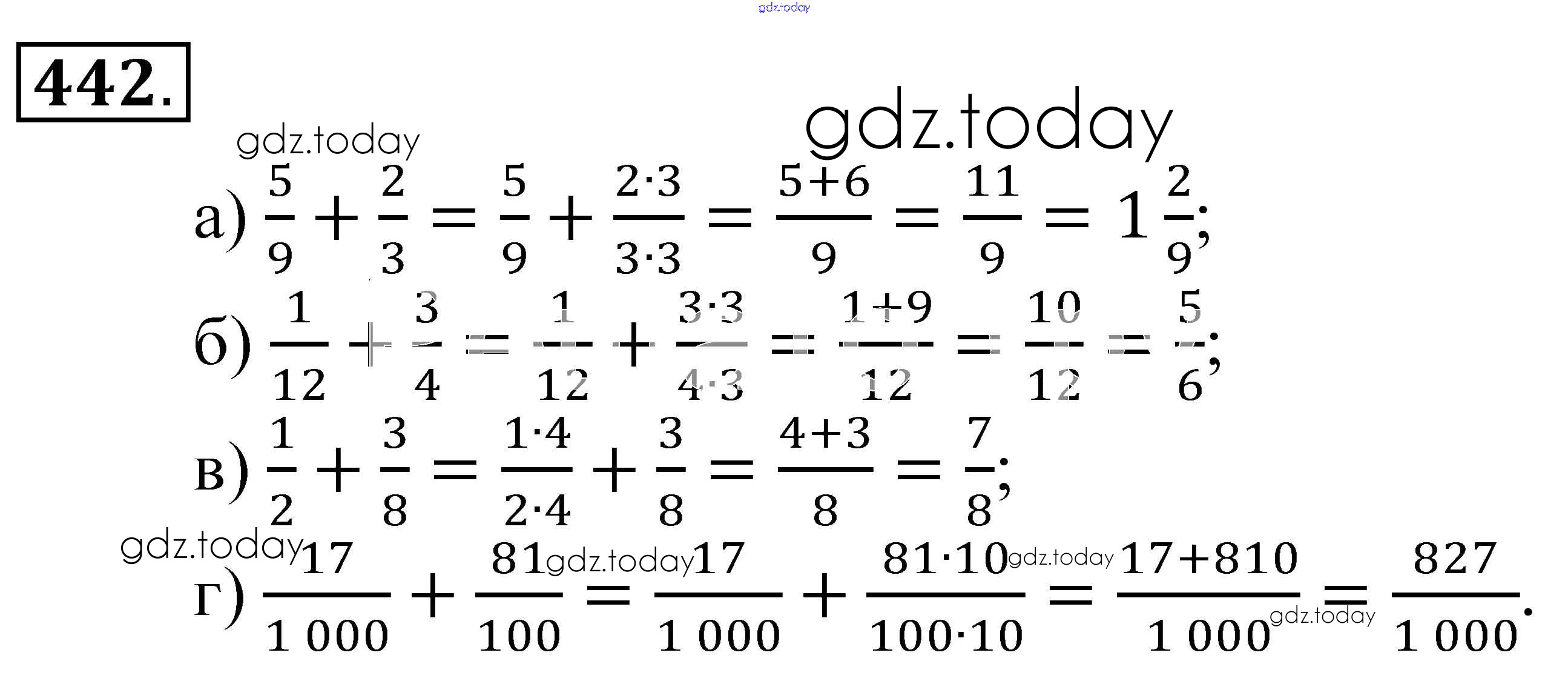 Ответы к Решение к упражнениям 442 Учебнику по Математике для 5 класса Зубарева, Мордкович Мнемозина 2015