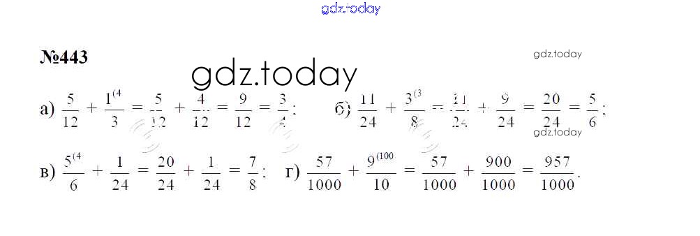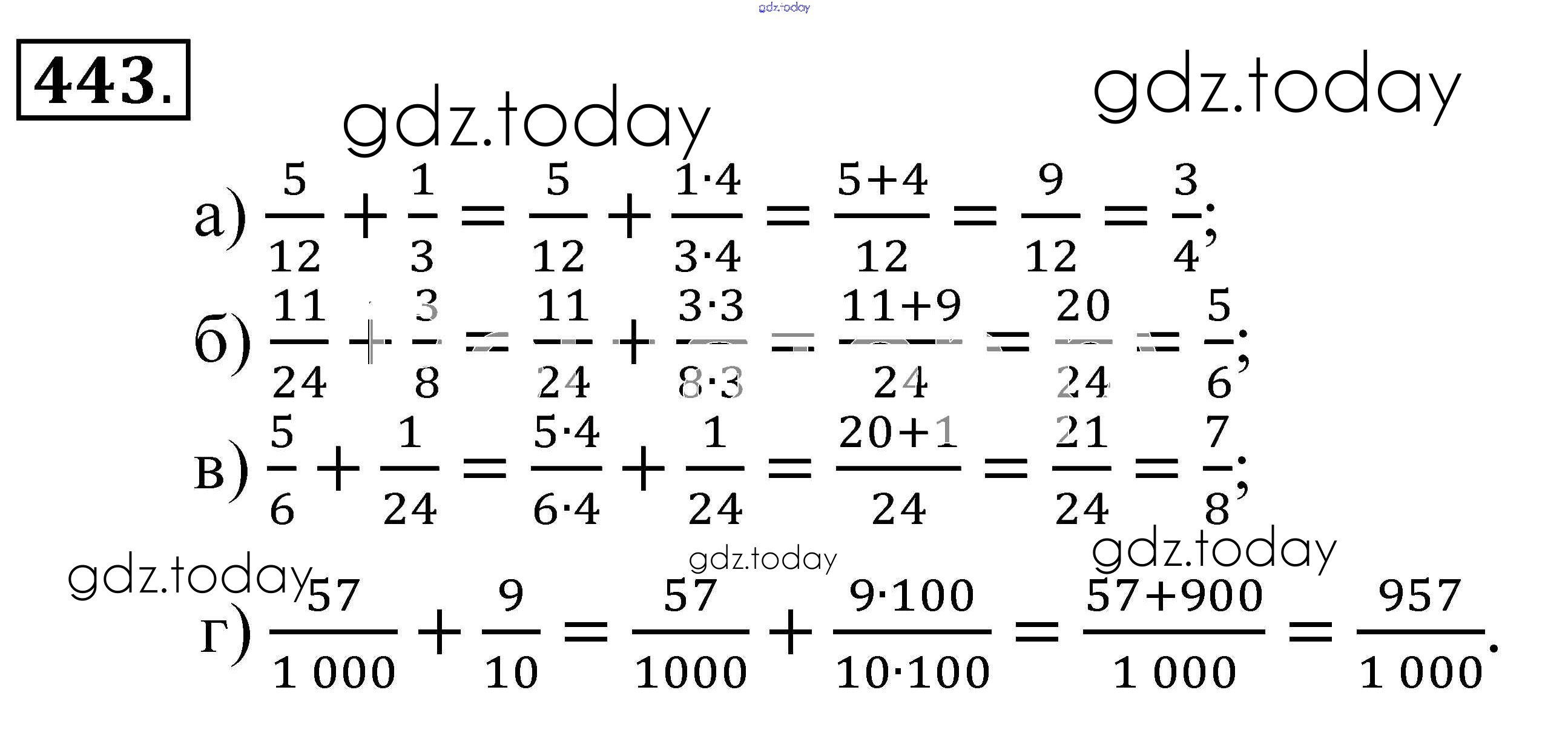 Ответы к Решение к упражнениям 443 Учебнику по Математике для 5 класса Зубарева, Мордкович Мнемозина 2015