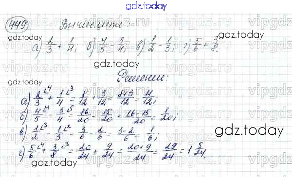 Ответы к Решение к упражнениям 449 Учебнику по Математике для 5 класса Зубарева, Мордкович Мнемозина 2015