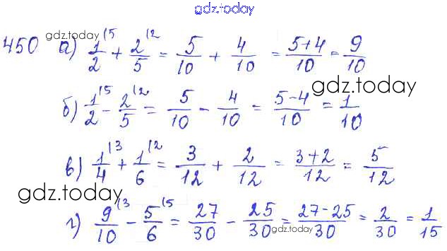 Ответы к Решение к упражнениям 450 Учебнику по Математике для 5 класса Зубарева, Мордкович Мнемозина 2015