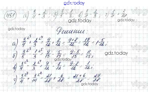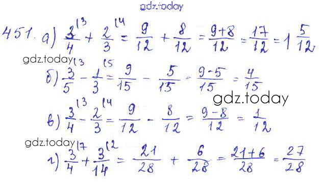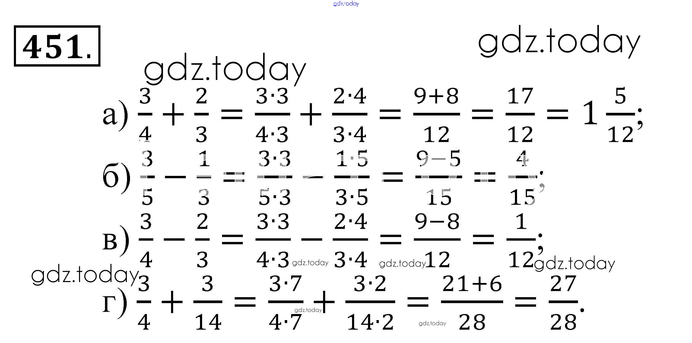 На страницах сайта gdz.today вы найдете учебный и вспомогательный материал, направленный на улучшения знаний школьной программы. ГДЗ - онлайн мир знаний Решение к упражнениям 451 Учебнику по Математике для 5 класса Зубарева, Мордкович Мнемозина 2015