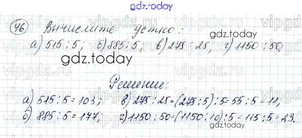 Ответы к Решение к упражнениям 46 Учебнику по Математике для 5 класса Зубарева, Мордкович Мнемозина 2015