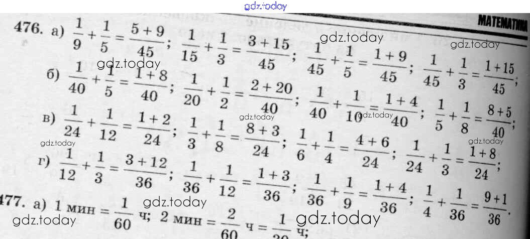 Ответы к Решение к упражнениям 476 Учебнику по Математике для 5 класса Зубарева, Мордкович Мнемозина 2015