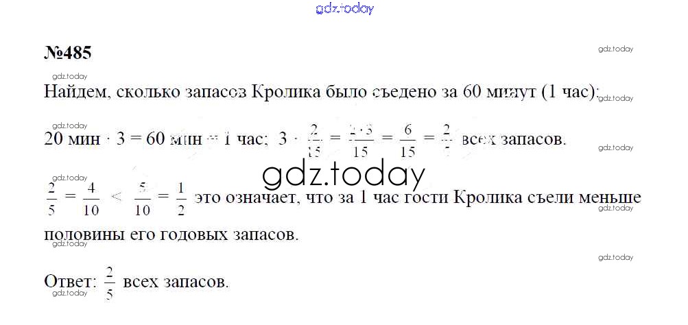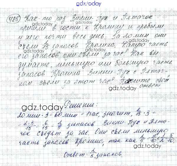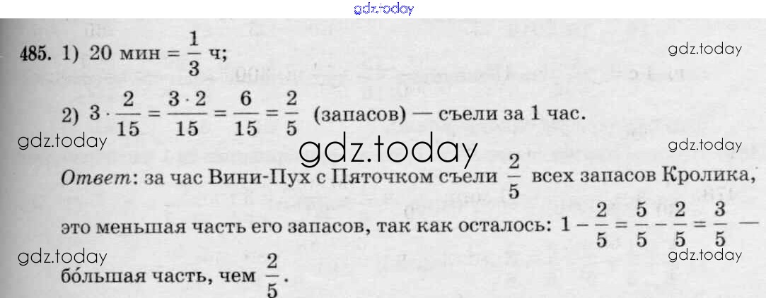 Ответы к Решение к упражнениям 485 Учебнику по Математике для 5 класса Зубарева, Мордкович Мнемозина 2015