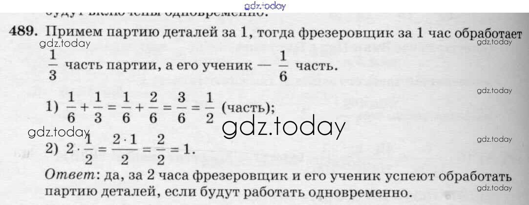 Ответы к Решение к упражнениям 489 Учебнику по Математике для 5 класса Зубарева, Мордкович Мнемозина 2015