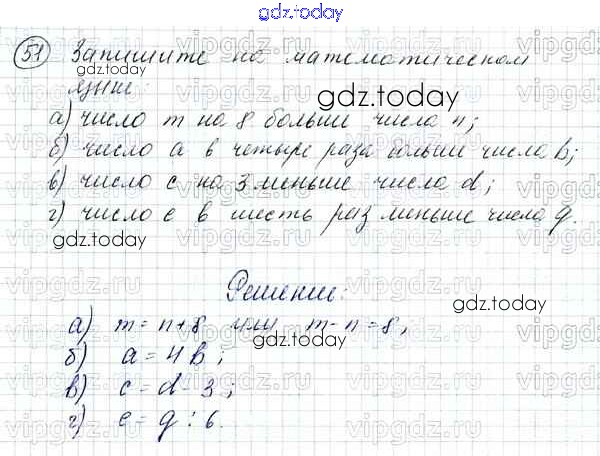 Ответы к Решение к упражнениям 51 Учебнику по Математике для 5 класса Зубарева, Мордкович Мнемозина 2015