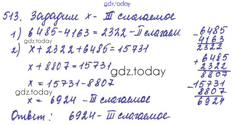 Ответы к Решение к упражнениям 513 Учебнику по Математике для 5 класса Зубарева, Мордкович Мнемозина 2015