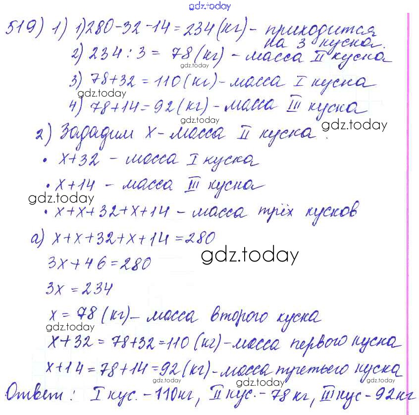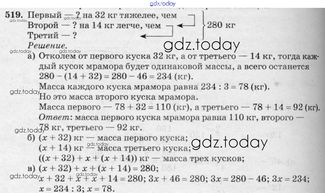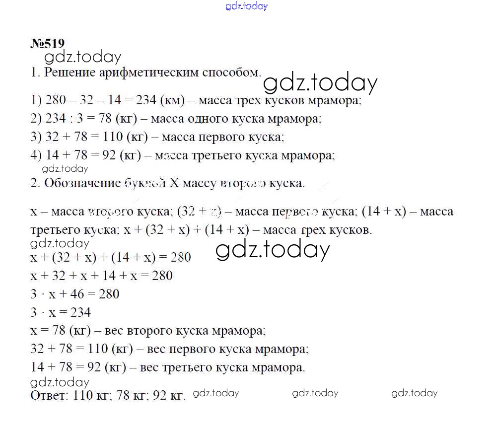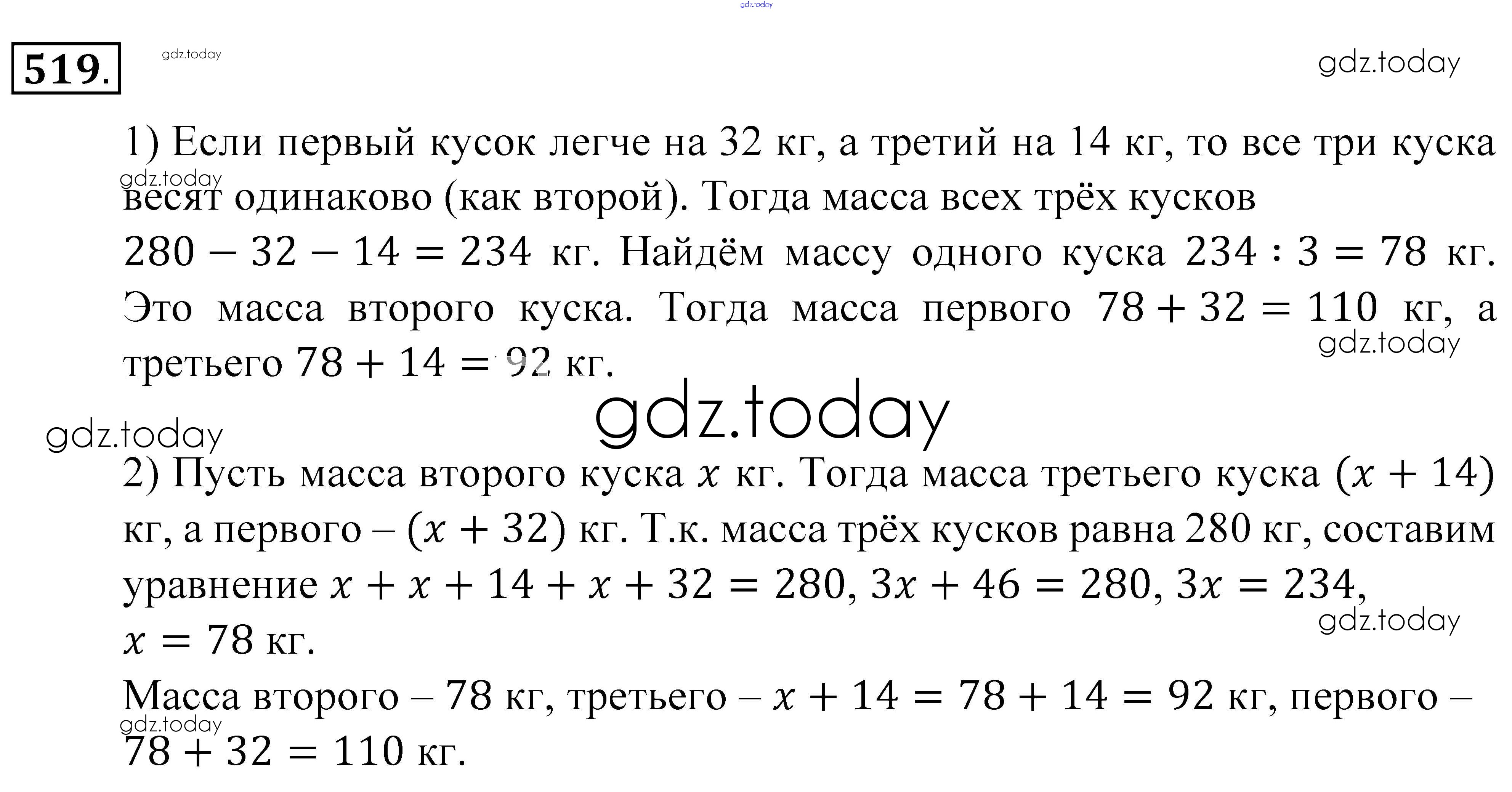 Ответы к Решение к упражнениям 519 Учебнику по Математике для 5 класса Зубарева, Мордкович Мнемозина 2015