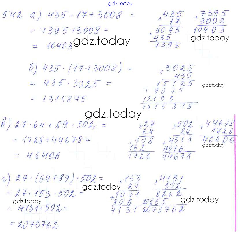 Ответы к Решение к упражнениям 542 Учебнику по Математике для 5 класса Зубарева, Мордкович Мнемозина 2015