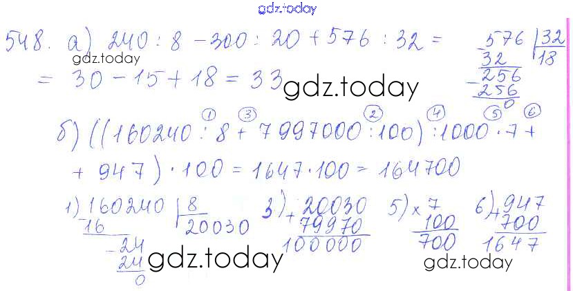 Ответы к Решение к упражнениям 548 Учебнику по Математике для 5 класса Зубарева, Мордкович Мнемозина 2015