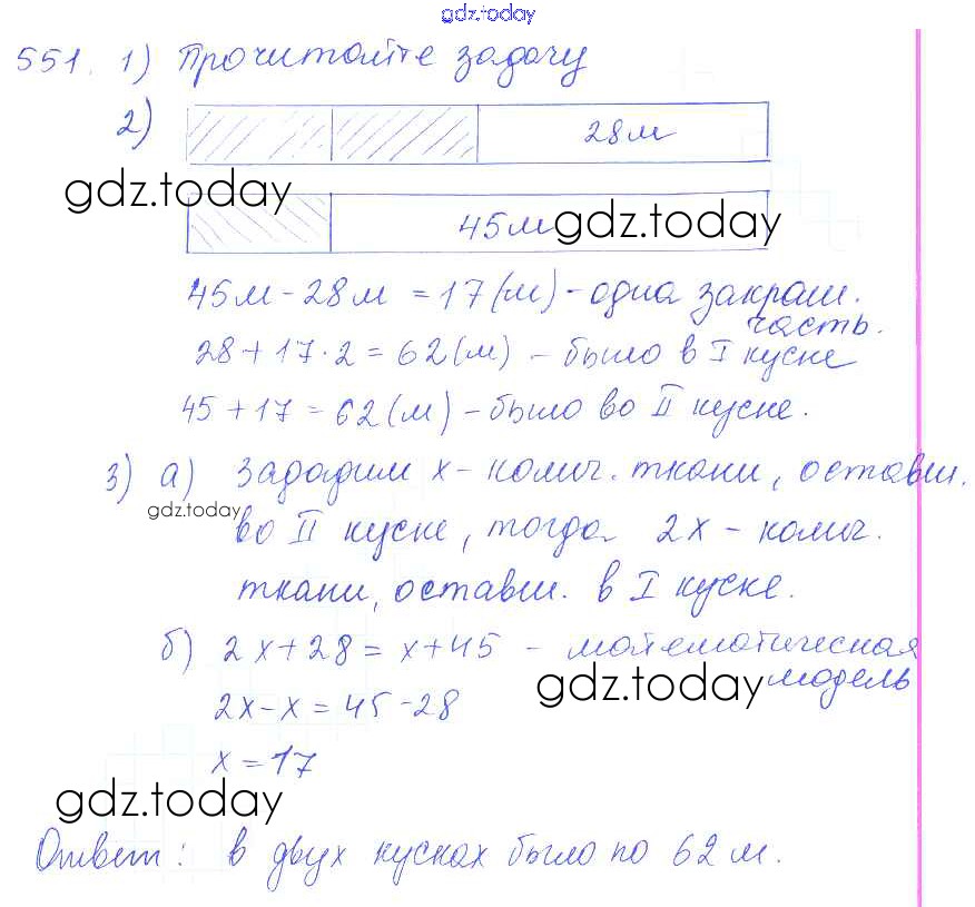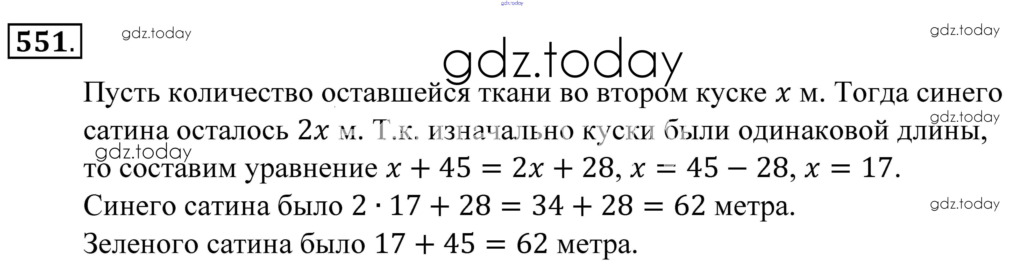 Ответы к Решение к упражнениям 551 Учебнику по Математике для 5 класса Зубарева, Мордкович Мнемозина 2015